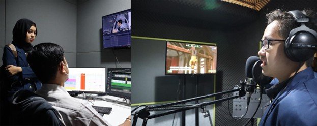 Selain itu, mahasiswa-mahasiswi juga diberikan tantangan untuk mencoba proses dubbing. Dubbing adalah proses mengisi suara pada produk-produk yang biasanya dilokalisasi ke dalam bahasa lokal sesuai target ekspansi produk atau perusahaannya. Produk-produk yang biasanya dilokalisasi seperti iklan, opera sabun/telenovela, animasi, dan konten-konten lainnya. Dalam proses dubbing, dubber dan recording engineer akan disibukkan dengan lip sync dan time code sync. Lip sync adalah menyamakan teks yang dibaca oleh dubber dengan gerak bibir video yang sedang berjalan. Sedangkan time code sync adalah menyamakan panjangnya durasi bacaan yang perlu didubbing dari bacaan aslinya ke hasil naskah lokalisasinya.